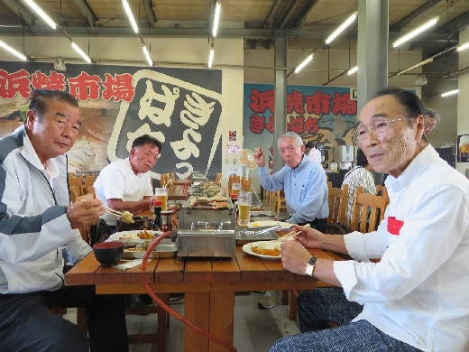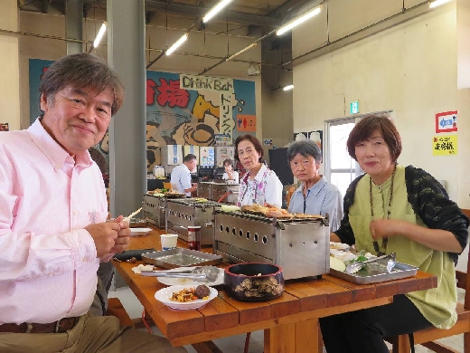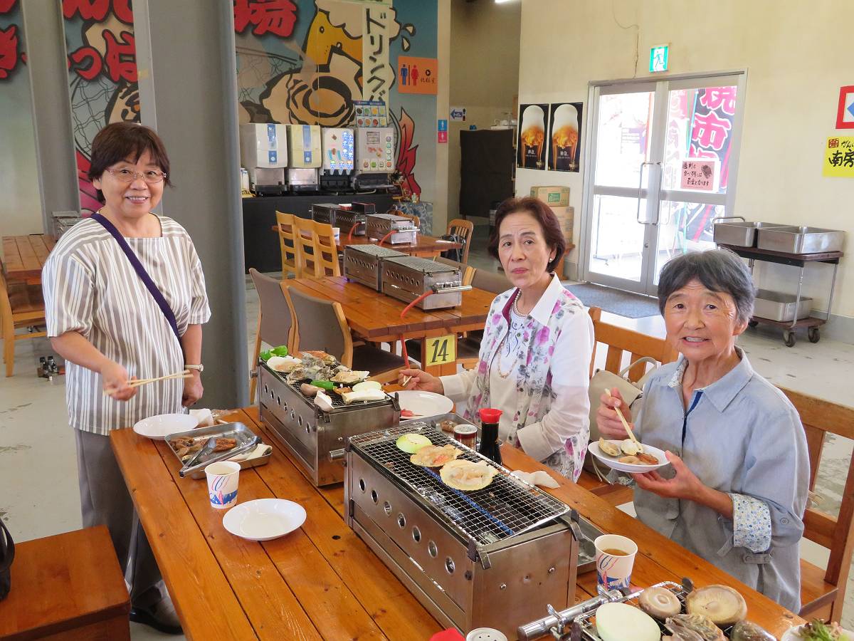 ハマグリ、サザエ、お魚、帆立、イカなどを自分で焼いて頂きました。