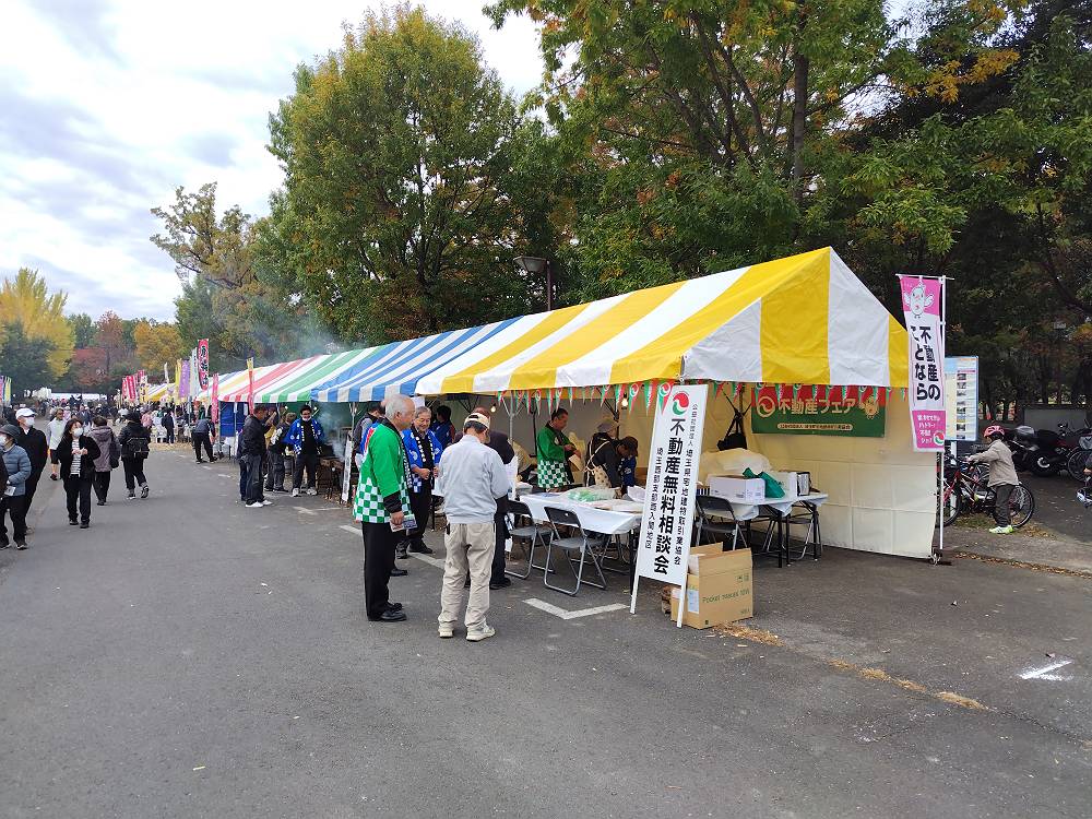 回を重ねること第40回となった鶴ヶ島産業まつりに、今年も鶴ヶ島市商工会宅建部会、鶴ヶ島宅建会と合同で、不動産フェアと無料相談会、恒例となった気仙沼直送の新鮮なさんま(11月7日水揚げ)を炭火で焼いた、焼きさんま販売を出展しました。