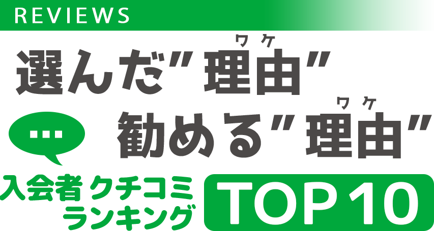 「新規入会者アンケート」を実施したところ、高い満足度を示すご好評の声を多数いただきました。その中から、多かったクチコミ情報をランキング形式でご紹介いたします。