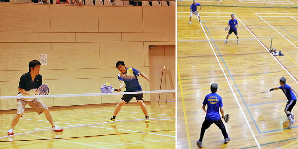 競技者の年齢幅も大学生から80歳代の高齢者まで幅広く、多くの方がパドルテニスを楽しんでおられ、硬式・軟式テニスや卓球からパドルテニスに入ってくる競技者も多く、私も硬式テニスからこの競技に入り込み、はまってしまいました。
