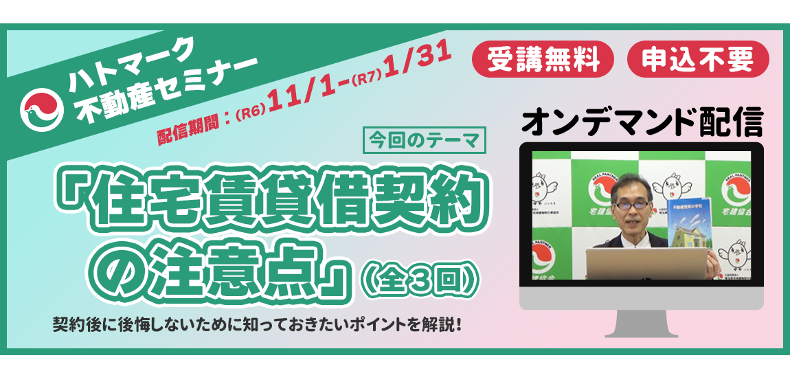 住宅賃貸借契約の注意点(WEB型)/相続空き家の無料相談会&セミナー(会場型) |
