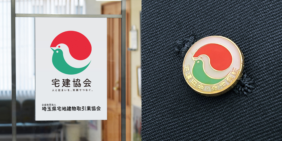 宅建協会のシンボルマーク「ハトマーク」をあしらったオリジナルグッズを販売しています。全国10万社が加盟する業界NO.1の「ハトマーク宅建協会」メンバーの証として、店頭や胸元に掲げます。