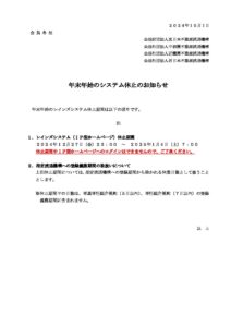 年末年始のシステム休止のお知らせ