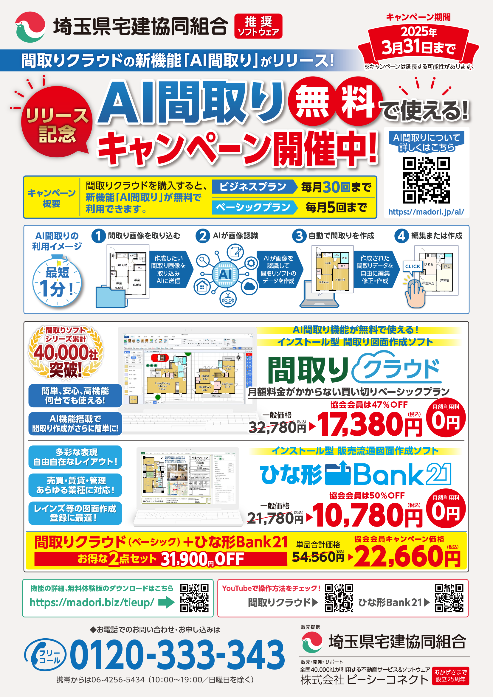 2025年3月31日まで「AI間取り」の無料キャンペーン期間を実施しております。