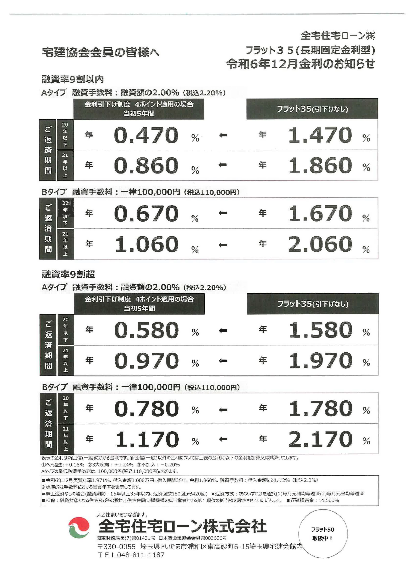 返済額が一定で生活設計を描きやすい「フラット35」を取り扱う全宅住宅ローンを是非ともご利用いただき「幅広いお客さまのニーズへの対応」をご実感ください。
