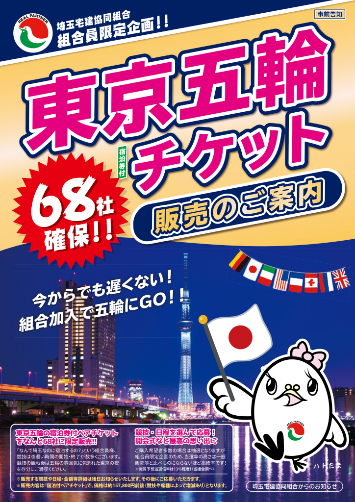 埼玉宅建協同組合では、組合員の方を対象として、2020年の夏に開催される東京五輪のチケット販売を実施いたします!