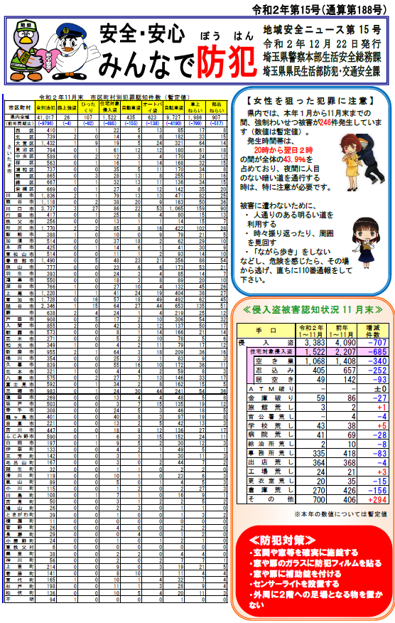 【埼玉県警】地域安全ニュースNEWS「女性を狙った犯罪に注意!」
