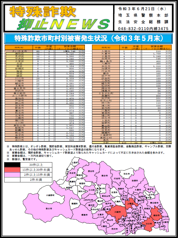【埼玉県警】特殊詐欺 抑止NEWS(最新の被害発生状況をチェック!)
