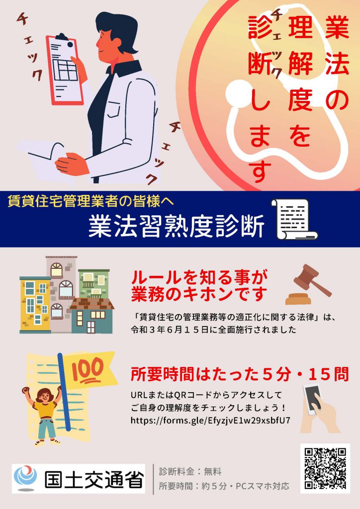 ※企業名・個人名の収集を行うものではありません。賃貸住宅管理業法の理解度確認のため積極的にご活用ください。