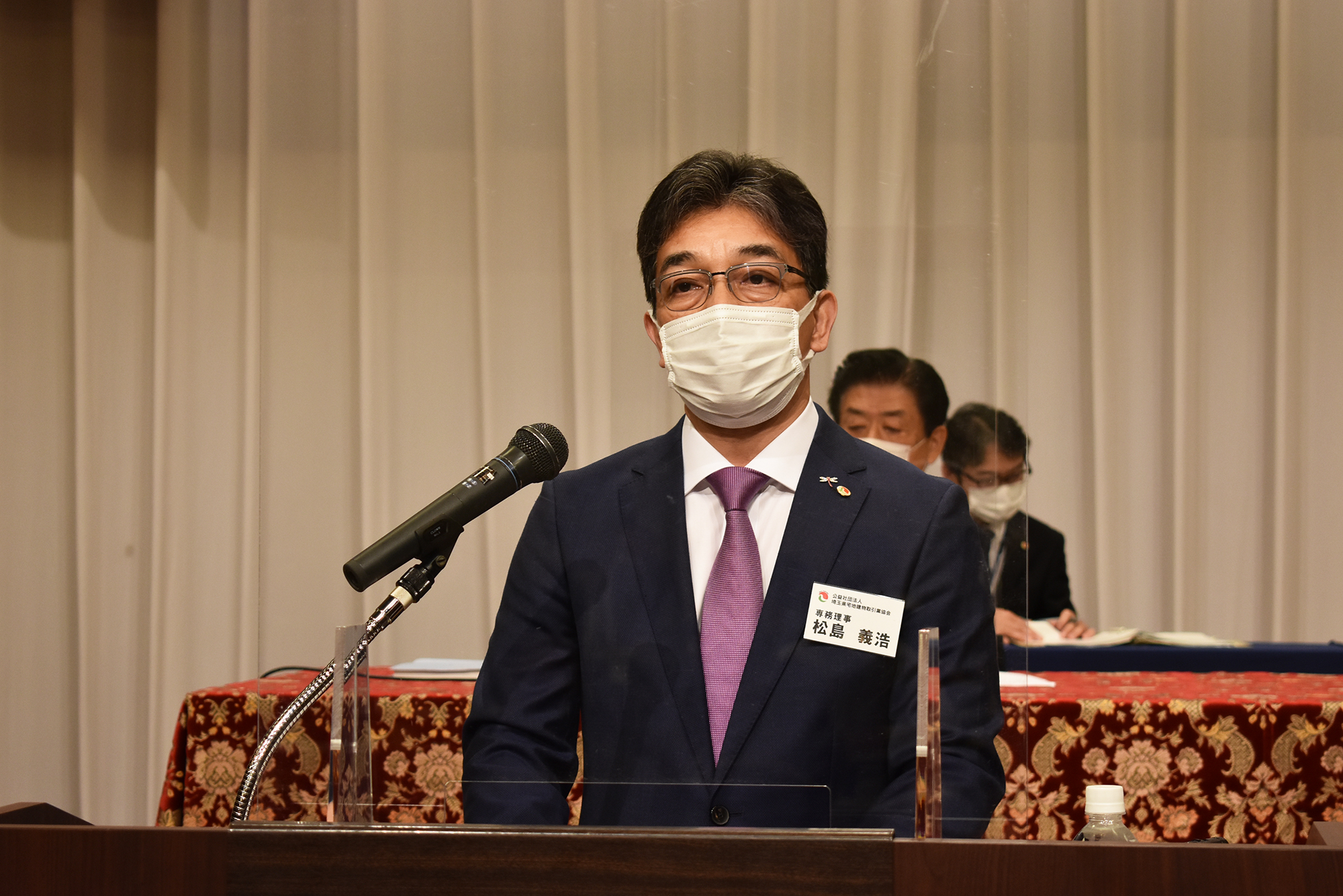 総会には、日頃から本会活動にご理解とご協力を頂いている多くの来賓方がお見えになり、埼玉県都市整備部長 村田 暁俊 様より大野 元裕 埼玉県知事からのご祝辞が代読されたほか、衆議院議員 柴山 昌彦 様、埼玉県議会議員・自由民主党議員宅建懇話会 会長の小島 信昭 様にご祝辞をいただきました。