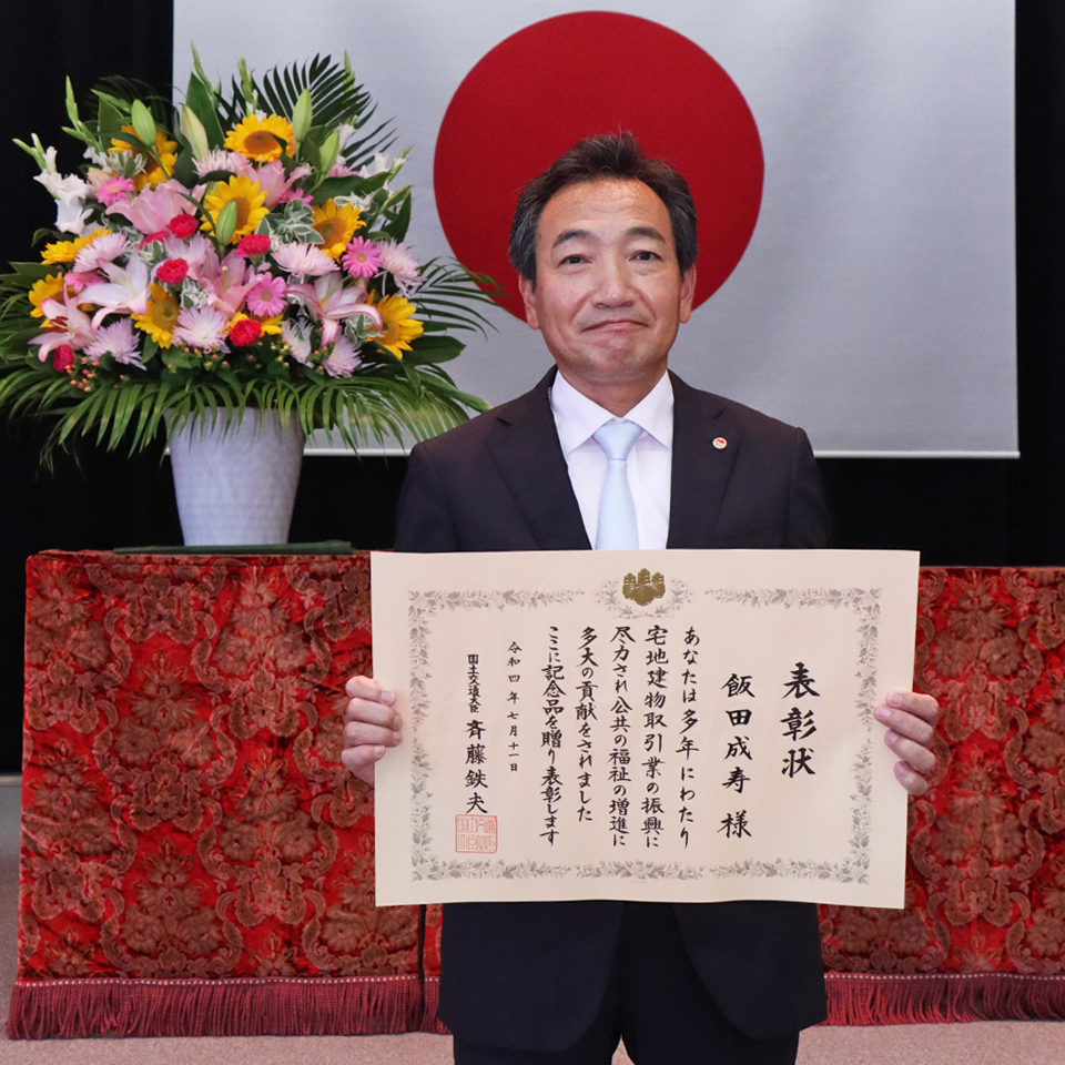 令和4年7月11日に、本会の飯田 成寿 会長と松永 好夫 副会長が、宅地建物取引業における業務精励の功績・功労により「国土交通大臣表彰」の受賞の栄に浴されました。