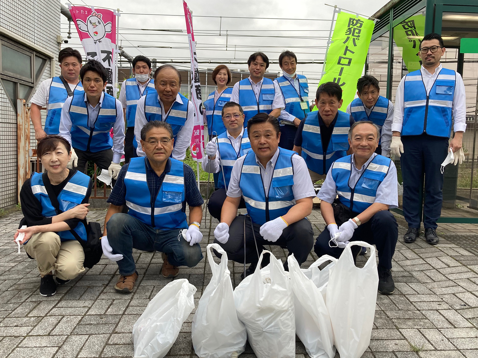 先日9月15日(木)に、本会の彩西支部と青年部の皆さんで、飯能駅周辺の清掃活動と防犯パトロールを行いました。