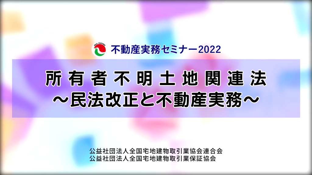 Web動画配信方式にて開催の本年度の不動産実務セミナー2022につきまして、第3弾のセミナー動画配信として、下記のテーマの研修映像の配信を開始致しました。