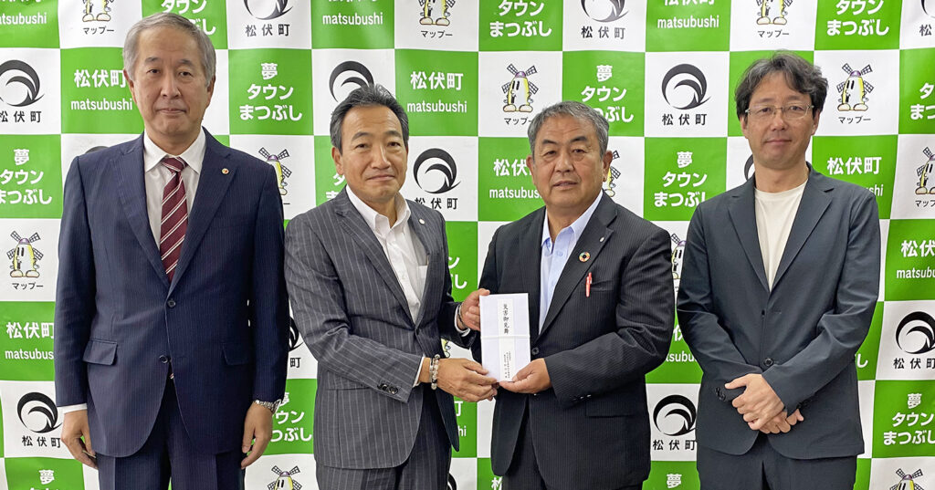 6月23日(金)に、松伏町役場および越谷市役所において、各首長立会いの下、贈呈式が取り行われました。