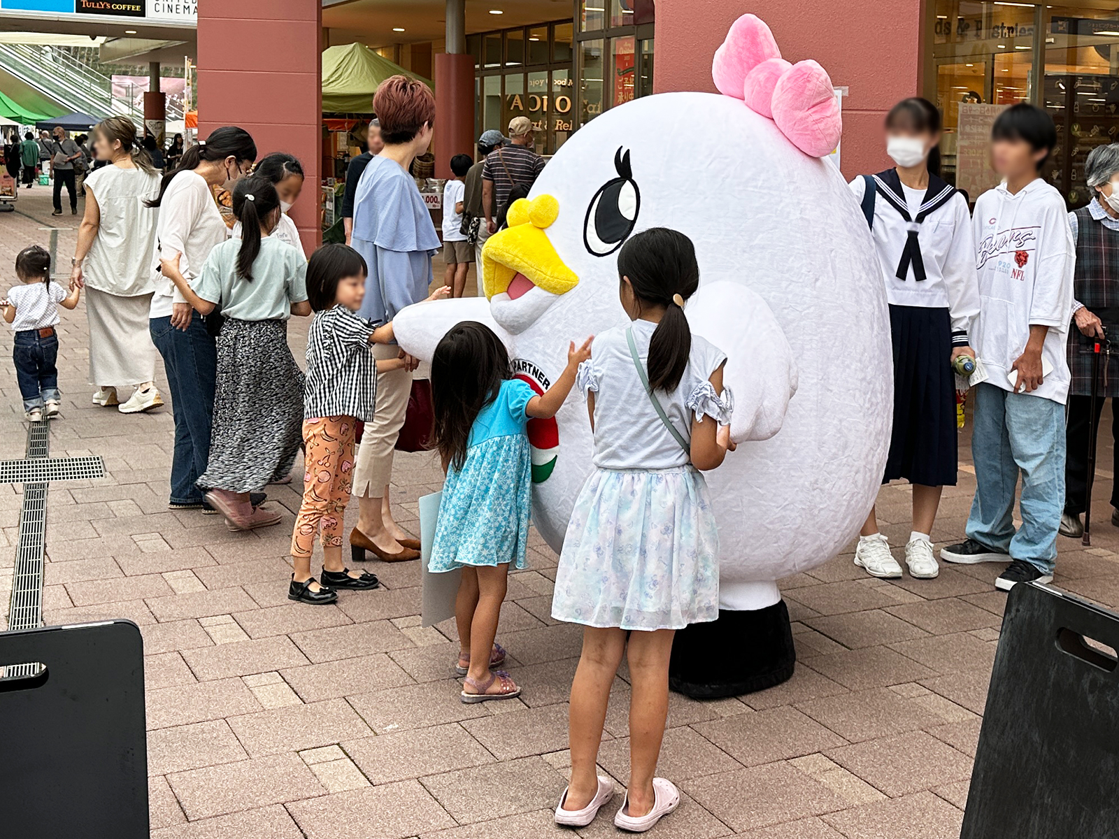 33社が出展して、たくさんのお客様で賑わう中、わたしたちのブースは“ハトたまパワー”でお子様たちにも大人気!