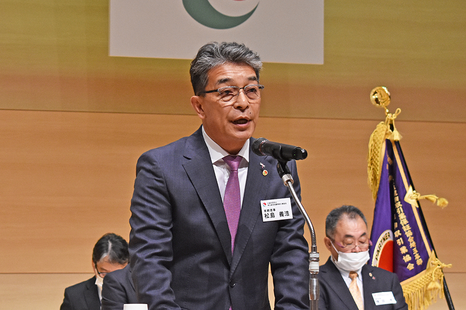 総会に先立ち、飯田会長は挨拶の中で令和4・5年度の2年間を振り返り、『みんなを笑顔にする!健全な信頼される宅建協会へ』を目標に運営を行い、ハトマーク加盟店の認知度向上のため、ラジオやテレビCM、YouTube広告を展開するなど、会員業務支援策を強化していることを報告した。また、令和7年から本会が「宅地建物取引士資格試験」の協力機関となることが正式決定したことや、埼玉県「空き家コーディネーター」業務を受託したことなど、大きな成果があったことについて「会員の皆様のご支援のおかげ」として感謝の言葉を述べました。