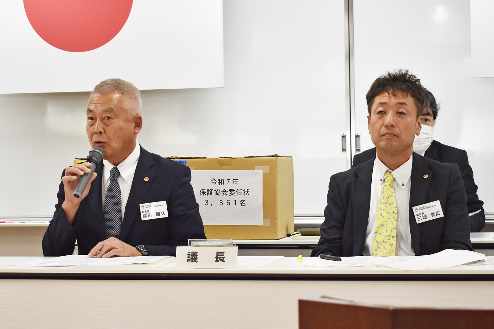 保証協会においては、宅建協会との連携協力のもとで実施された社会貢献のための公益事業や、会員の業務支援の実施への取り組みなど、令和6年度の事業と会計に関する報告を行いました。審議事項では、監事1名選任について審議が行われ、可決承認されました。