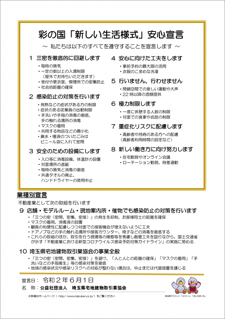 →「彩の国 新しい生活様式安心宣言」(埼玉県宅建協会)