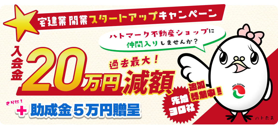 →「宅建業 開業スタートアップキャンペーン」および「U-50経営者・女性経営者応援キャンペーン」のご案内