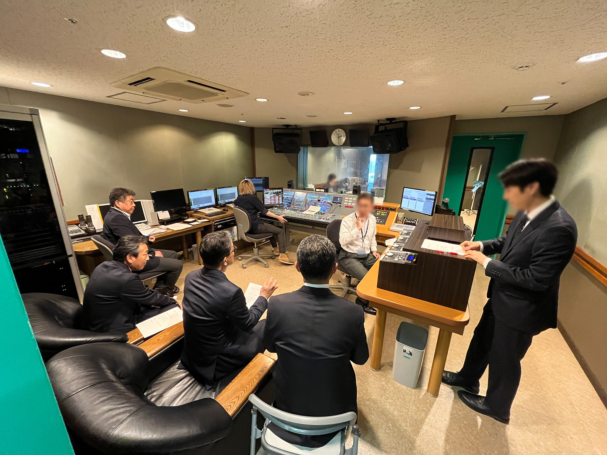 飯田会長・松島専務理事・金子総務・財務広報委員長の立会いの下、ナレーションやBGMについて細かな打合せを進め、リスナーに好感を抱いて頂けるような明るく爽やかなナレーションと軽快なBGMが調和した素晴らしいCMが出来上がりました。