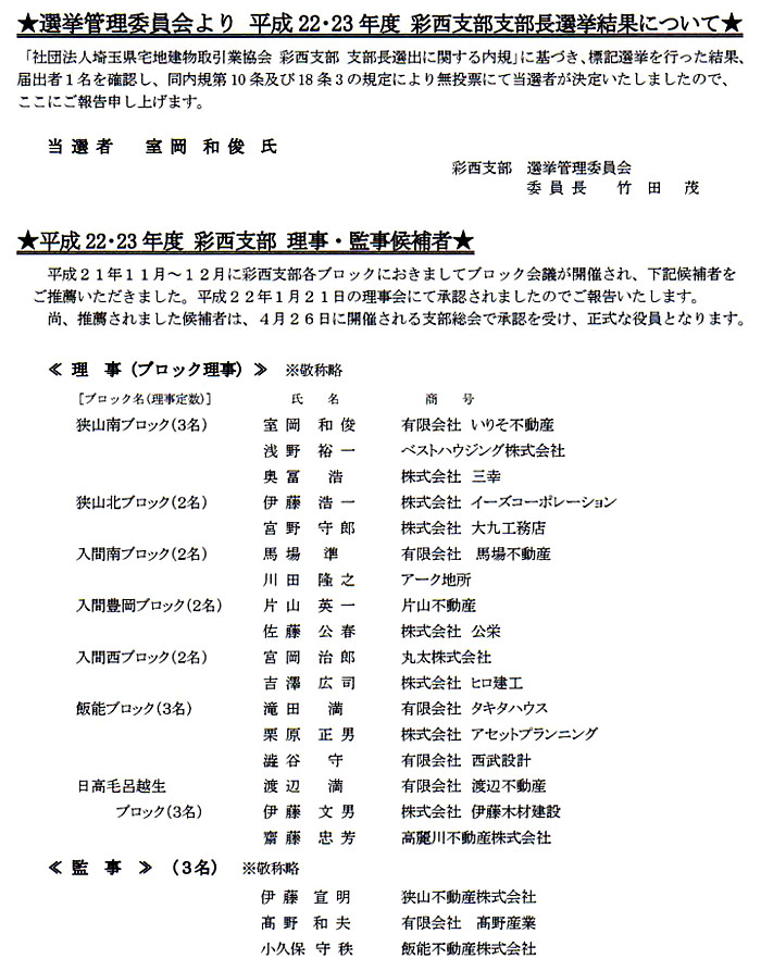 彩西支部お知らせ/社団法人 埼玉県宅地建物取引業協会 彩西支部 |
