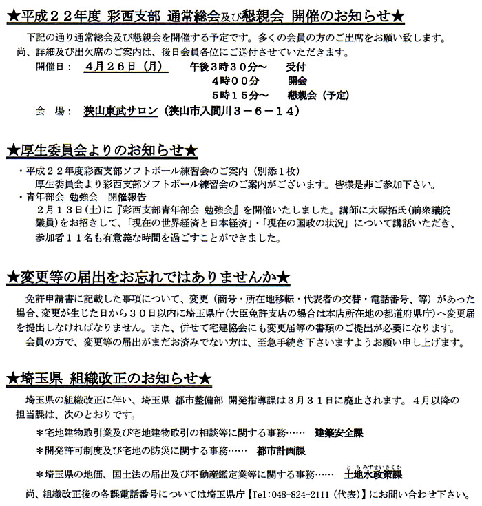 社団法人 埼玉県宅地建物取引業協会「彩西支部からのお知らせ」2010年3月号(2) |