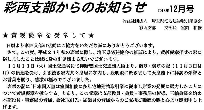 公益社団法人 埼玉県宅地建物取引業協会「彩西支部からのお知らせ」2012年12月号(1)