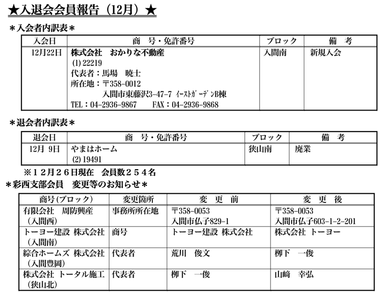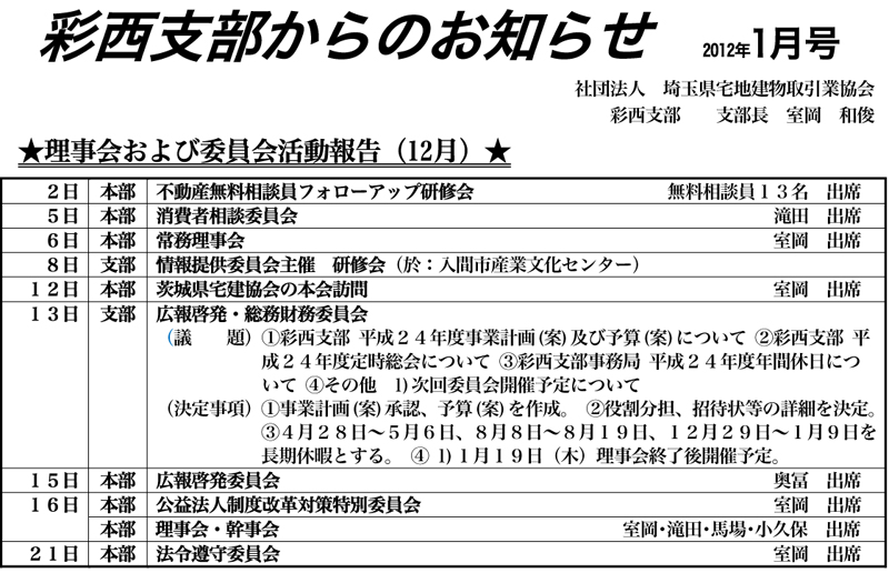 社団法人 埼玉県宅地建物取引業協会「彩西支部からのお知らせ」2012年1月号