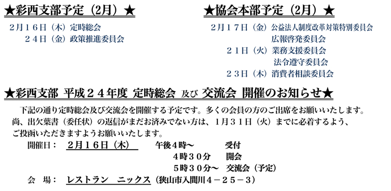 彩西支部お知らせ/社団法人 埼玉県宅地建物取引業協会 彩西支部