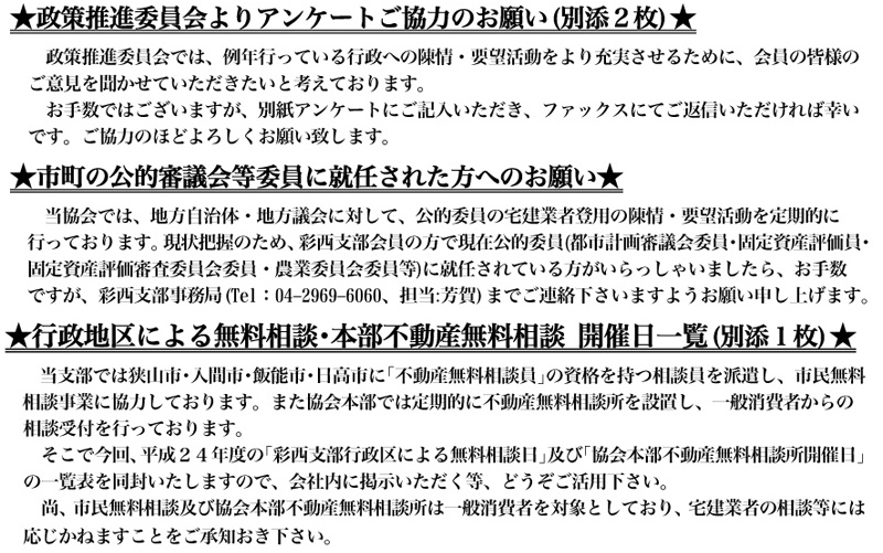彩西支部お知らせ/公益社団法人 埼玉県宅地建物取引業協会 彩西支部