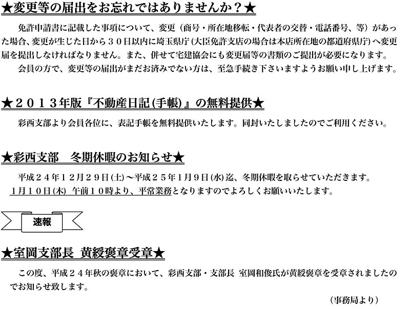 公益社団法人 埼玉県宅地建物取引業協会「彩西支部からのお知らせ」2012年11月号(2)