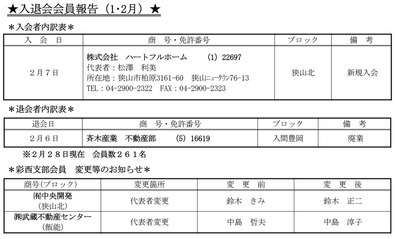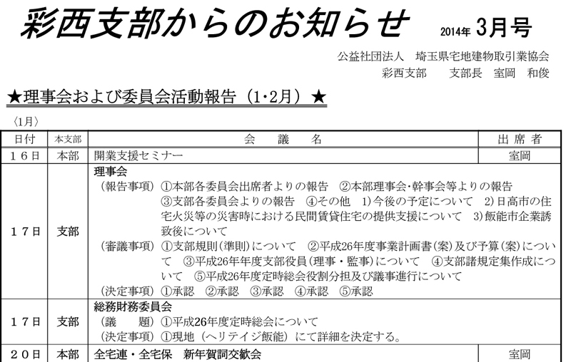公益社団法人 埼玉県宅地建物取引業協会「彩西支部からのお知らせ」2014年3月号(1)