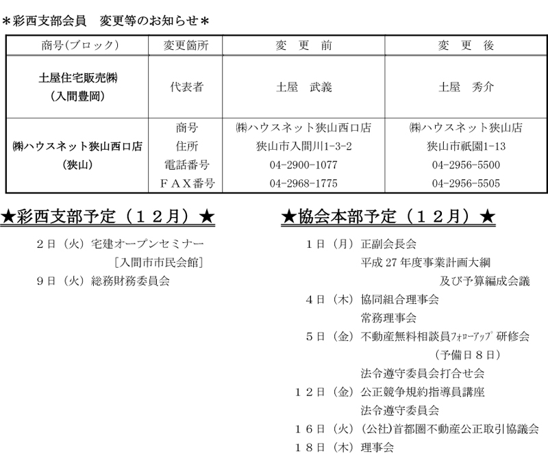 公益社団法人 埼玉県宅地建物取引業協会「彩西支部からのお知らせ」2014年11月号(2)