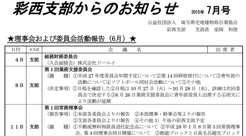 公益社団法人 埼玉県宅地建物取引業協会「彩西支部からのお知らせ」2015年7月号(1)