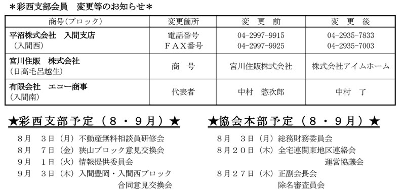 彩西支部お知らせ/公益社団法人 埼玉県宅地建物取引業協会 彩西支部