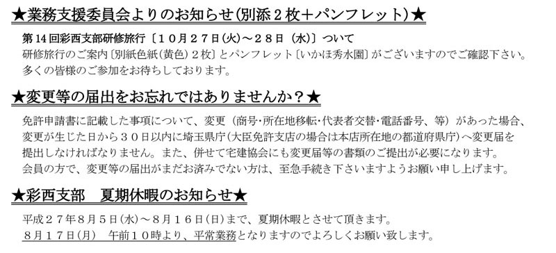 公益社団法人 埼玉県宅地建物取引業協会「彩西支部からのお知らせ」2015年7月号(2)