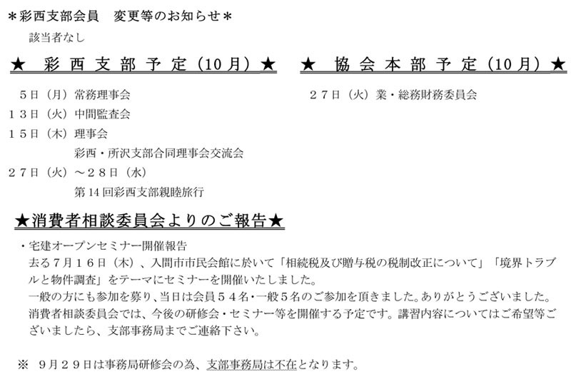 彩西支部お知らせ/公益社団法人 埼玉県宅地建物取引業協会 彩西支部