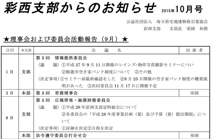 Copyright(C)2015 (公社)埼玉県宅地建物取引業協会彩西支部. All rights reserved.