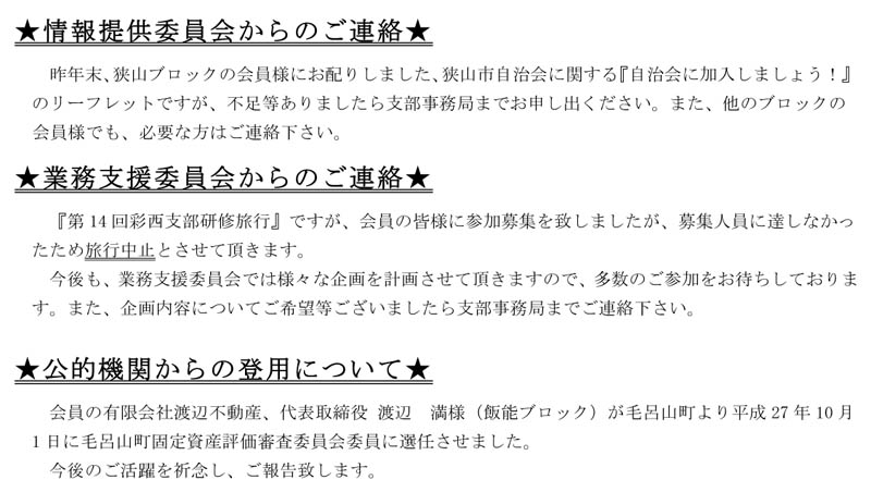 公益社団法人 埼玉県宅地建物取引業協会「彩西支部からのお知らせ」2015年10月号(2)