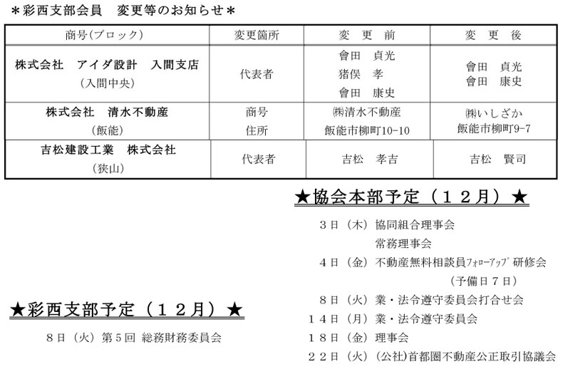 彩西支部お知らせ/公益社団法人 埼玉県宅地建物取引業協会 彩西支部