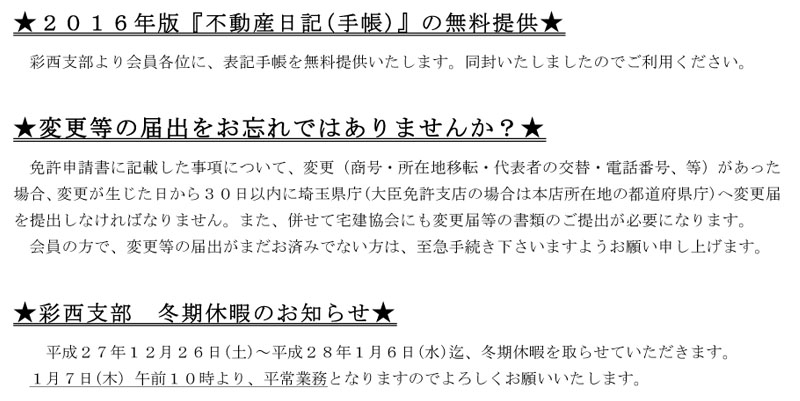 公益社団法人 埼玉県宅地建物取引業協会「彩西支部からのお知らせ」2015年11月号(2)