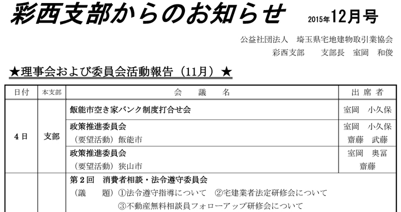 公益社団法人 埼玉県宅地建物取引業協会「彩西支部からのお知らせ」2015年12月号(1)