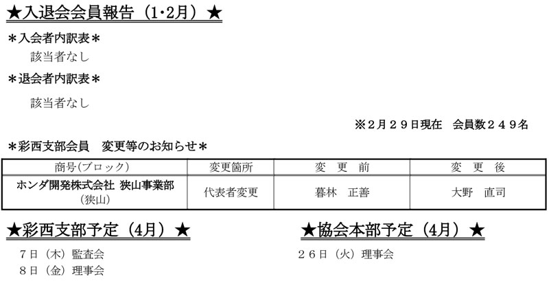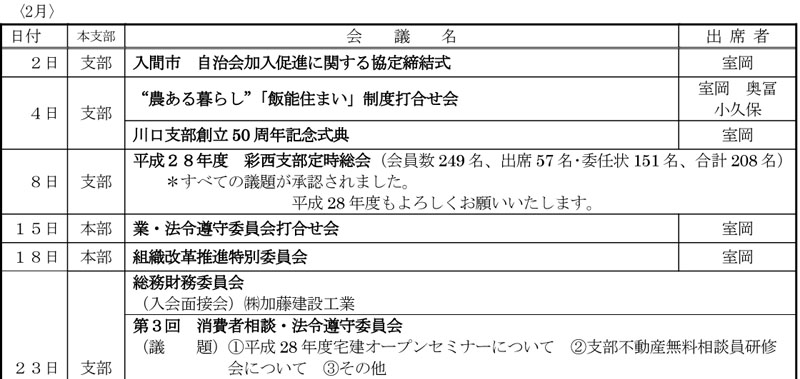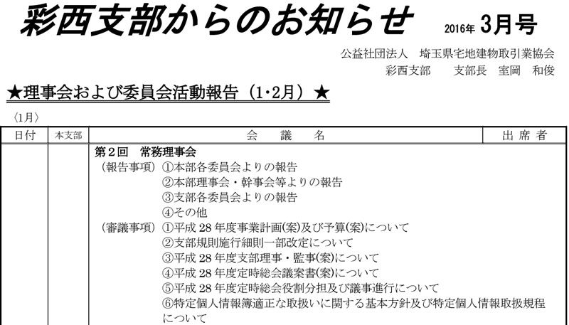 公益社団法人 埼玉県宅地建物取引業協会「彩西支部からのお知らせ」2016年3月号(1)