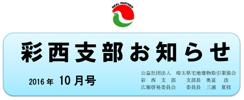 Copyright(C)2016 (公社)埼玉県宅地建物取引業協会彩西支部. All rights reserved.