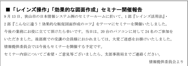 ※ご意見・ご希望等ございましたら 彩西支部事務局(柴田・山下)までご連絡ください。 Tel 04-2969-6060 Fax 04-2969-6075 (受付時間 月・火・木・金曜日 午前10時〜午後4時)