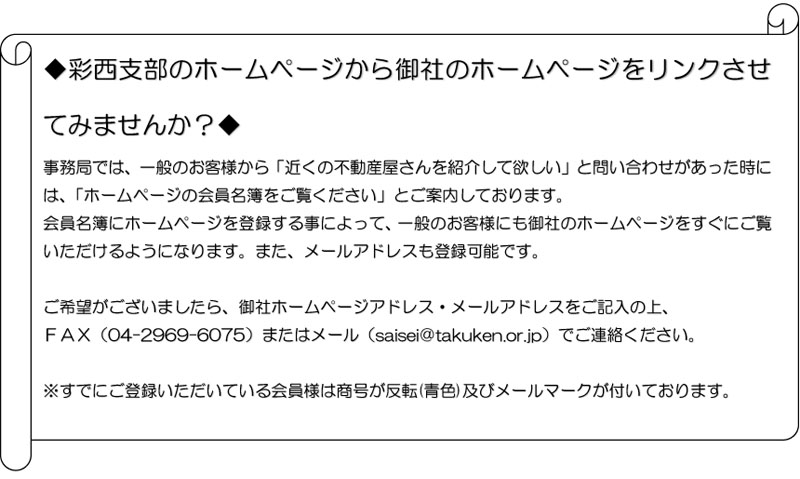 彩西支部お知らせ/公益社団法人 埼玉県宅地建物取引業協会 彩西支部