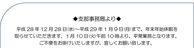 | HOME | ごあいさつ | 支部紹介 | 無料相談会 | 研修会 | 組織・役員 | 会員名簿 | 支部お知らせ | リンク集 |