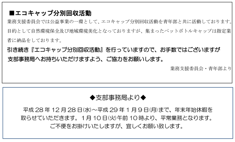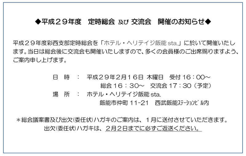 ※ご意見・ご希望等ございましたら 彩西支部事務局(柴田・山下)までご連絡ください。