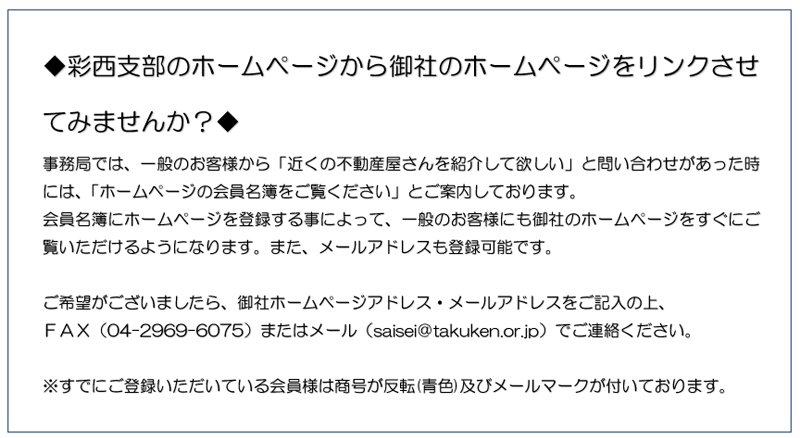 彩西支部お知らせ/公益社団法人 埼玉県宅地建物取引業協会 彩西支部
