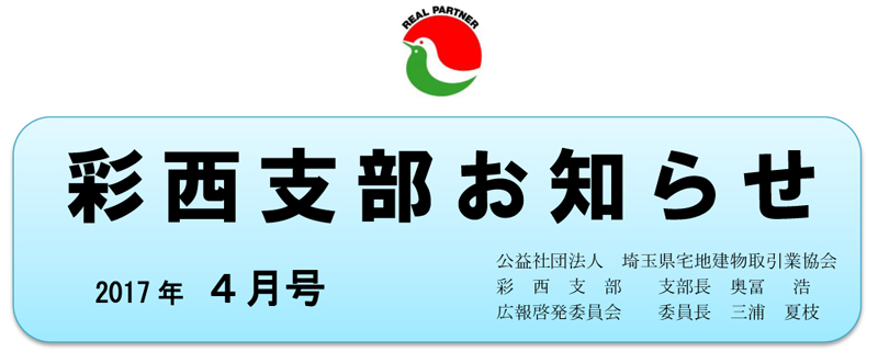 公益社団法人 埼玉県宅地建物取引業協会「彩西支部からのお知らせ」2017年4月号(1)  PDFでもご覧いただけます